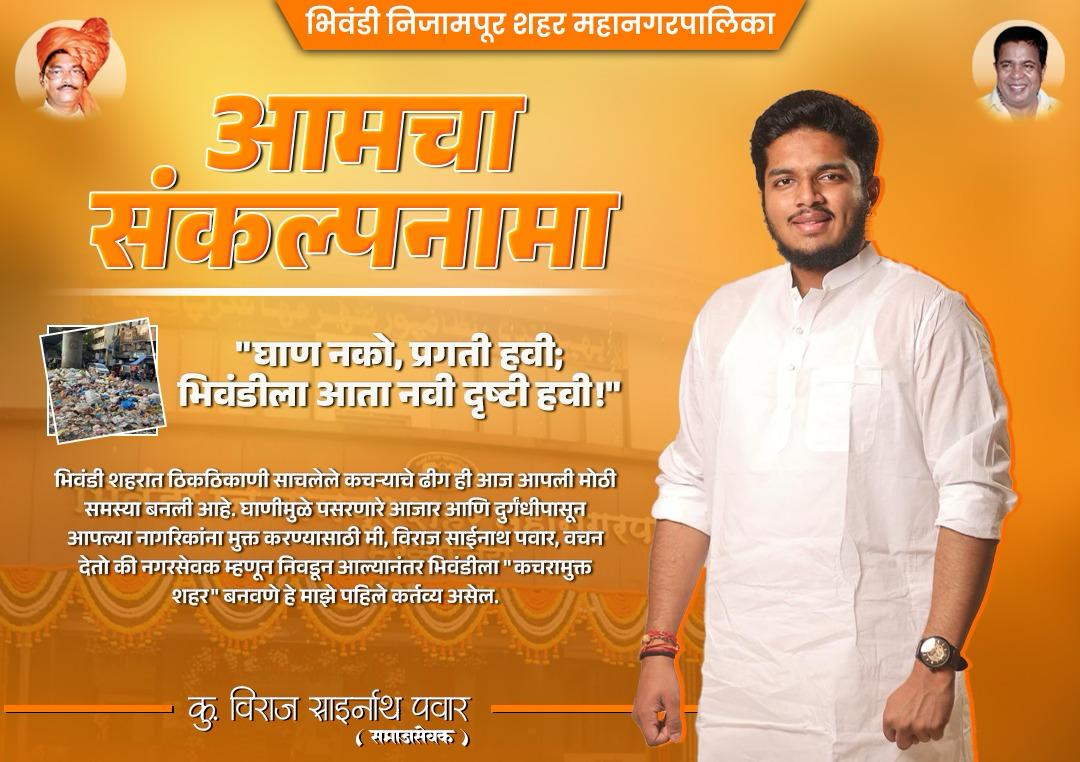 विराज साईनाथ पवार हे सामान्य माणसातून उभे राहिलेले, स्वच्छ प्रतिमेचे आणि विकासाभिमुख विचारांचे अपक्ष उमेदवार आहेत. जनतेच्या प्रश्नांसाठी सातत्याने कार्यरत राहणे, पारदर्शकता राखणे आणि शब्दांपेक्षा कामाला प्राधान्य देणे हीच त्यांची ओळख आहे. शिक्षण, आरोग्य, रोजगार आणि मूलभूत सुविधांचा विकास हाच त्यांचा ध्यास असून, जनतेच्या विश्वासावर ते आपली वाटचाल करत आहेत.